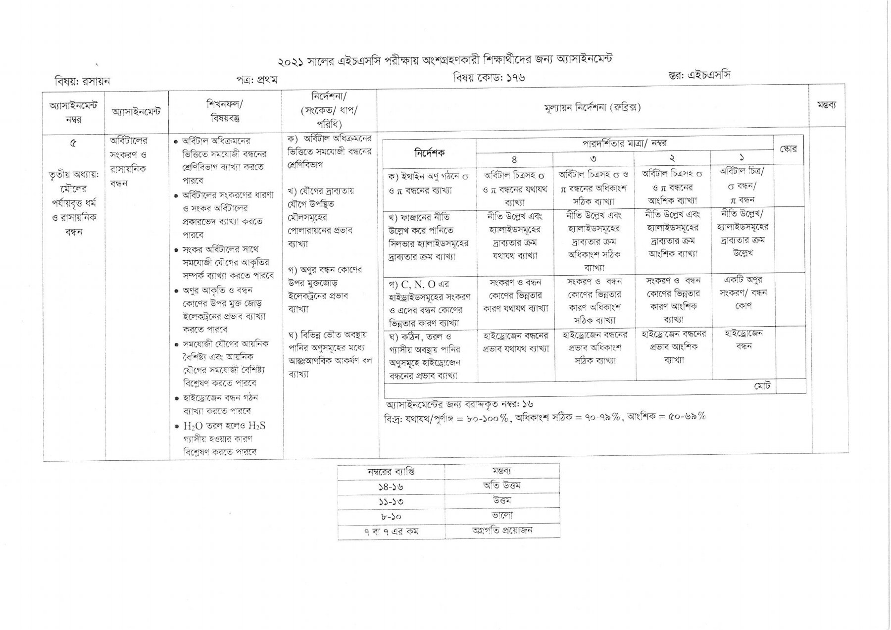 এইচএসসি/আলিম রসায়ন এসাইনমেন্ট সমাধান ২০২১ উত্তর PDF