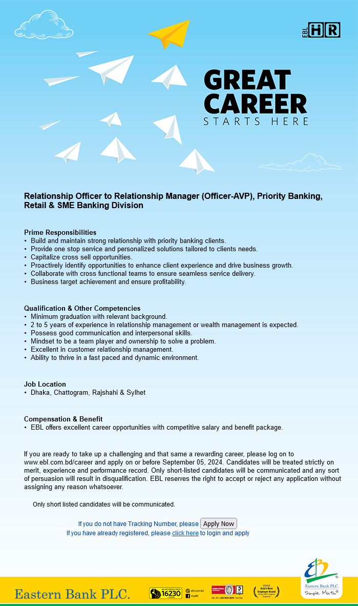Official Website: www.ebl.com.bd/career
