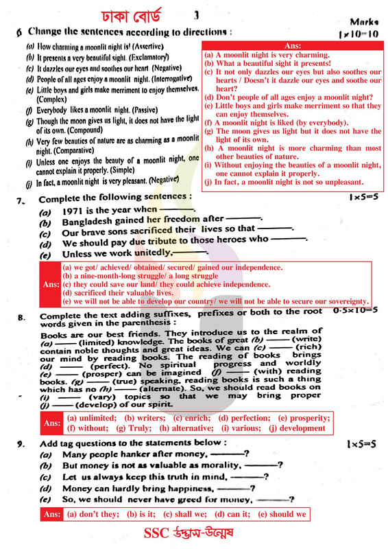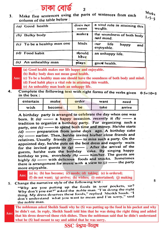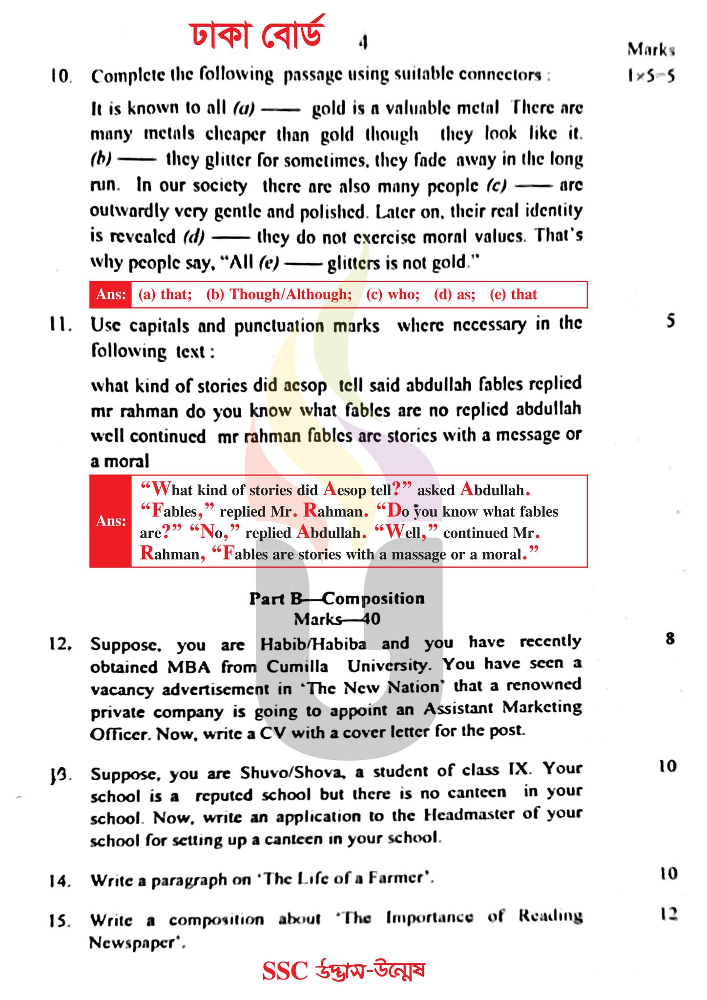 ঢাকা বোর্ড এসএসসি ইংরেজি ২য় পত্র প্রশ্ন